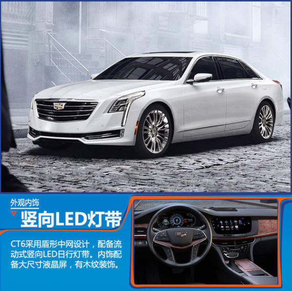 CT6是凯迪拉克在本月初举行的纽约车展发布的全新旗舰轿车,外观设计时尚大气。动力方面,CT6搭载一台全新的3.0T 双涡轮增压发动机,最大功率298kW,峰值扭矩为543Nm,与之配备的是通用汽车首款全新8速手自一体变速箱。CT6基于通用新Omega后驱平台进行打造,采用全铝车身技术,整车质量预计为1700kg。CT6拥有5184mm车长以及3109mm的轴距。CT6未来将在华国产销售。