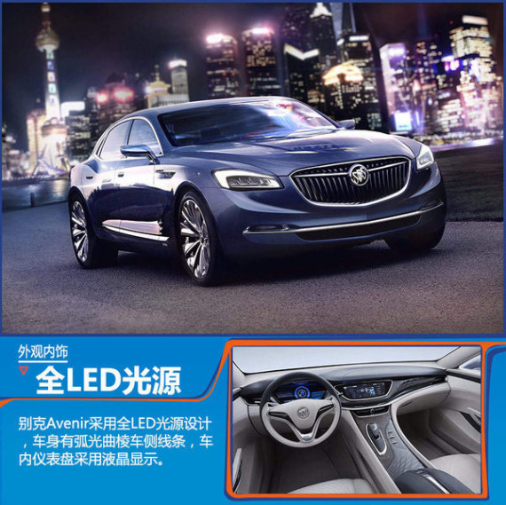 通用汽车在年初举行的底特律车展发布了别克全新旗舰概念车Avenir,该车将亮相上海车展。新车将定位于现有的别克君越之上,成为别克的旗舰产品,与奥迪A6L、宝马5系Li同级。Avenir概念车搭载新一代V6直喷发动机,配备主动燃油管理技术(停缸技术)以及发动机自动启停功能,与发动机匹配的是9速自动变速箱(具有拨片换挡功能)。新车配备双离合四驱系统以及自选式悬架阻尼模式,还具有离子发生空气净化装置、移动设备无线充电技术等诸多科技配置。