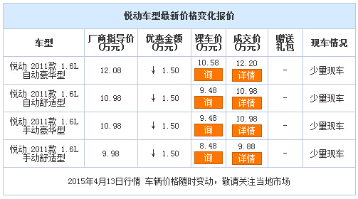 编辑建议:新款悦动增加了一键启动、智能钥匙、DVD导航等配置,性价比进一步提高,作为一款家用车还是相当不错的。