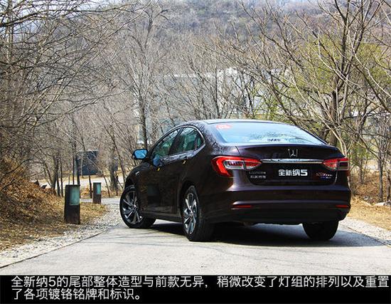 外观方面,全新纳5的前格栅面积加大,镀铬横条还加入了箭矢装设计,更显时尚动感。前大灯造型有所改动,加入了钩状设计,并增加LED日间行车灯。新车尾部线条也有一些调整,其尾灯造型与前大灯设计相呼应,尾部标识也做出了变化。尺寸上,新款车型长度比老款多了40mm,达到了4690mm,其余则没有变化。