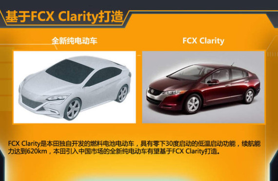 本田全新纯电动车外形与FCX Clarity氢燃料电池电动车颇为相似,新车有望为基于FCX Clarity打造。FCX Clarity氢燃料电池电动车为本田专为解决全球气候变暖等环保问题而打造的车型,该车以氢为燃料,排放物只有水,该车以本田独创的燃料电池堆“V Flow FC Stack”技术为核心,拥有较为出色的驾驭感受。目前FCX Clarity氢燃料电池电动车已在日本和美国市场进行租赁销售。