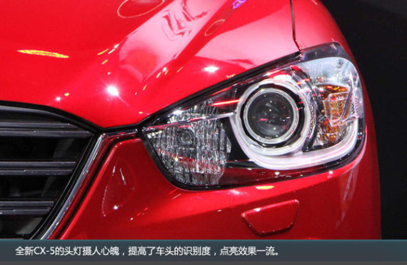 全新CX-5的头灯摄人心魄,提高了车头的识别度,点亮之后效果一流。
