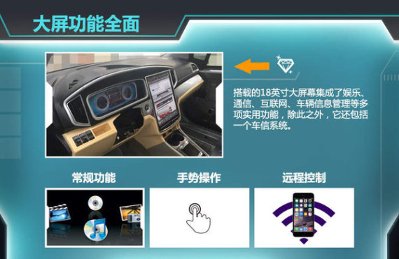 据了解,潍柴英致使用的18英寸中控屏不但尺寸硕大,而且功能同样十分丰富。有消息称,未来英致汽车会在汽车方向盘后面仪表盘和中控台位置分别配备两个不同尺寸的屏幕,这两个屏幕集成了娱乐、通信、互联网、车辆信息管理等多项实用功能。除此之外,它还包括一整套车信系统,驾驶员通过该系统可以进行遥控、声控、手势控制等等。它甚至可以与手机、电视、以及其他智能家电设备连接,从而实现远程操控。