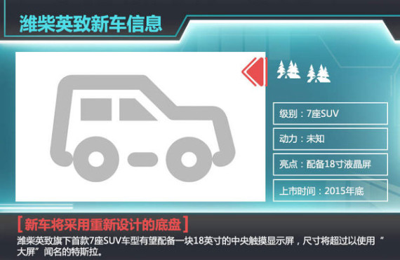 潍柴英致自进军乘用车市场后,首先投放的便是SUV产品,由此也能看出企业对于这一“蓝海”市场的重视。随着战略方针的日益明确,有关潍柴英致更多SUV的投放计划已经被提上日程。日前,媒体在与潍柴(重庆)汽车有限公司总经理叶子青沟通后获悉:旗下首款7座SUV将于今年底推向市场。值得一提的是,这款新车有望配备一块18英寸的中央触摸显示屏,尺寸将超过以使用“大屏”闻名的特斯拉。
