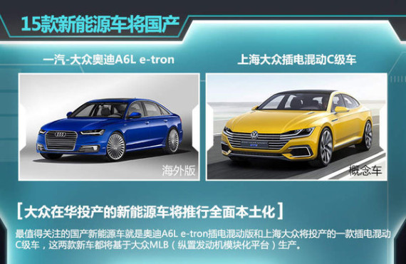 关于大众即将在华实现本土化生产的15新能源车型,其中最值得关注的就是奥迪A6L e-tron插电混动版和上海大众将投产的一款插电混动C级车,这两款新车都将基于大众MLB(纵置发动机模块化平台)生产。提到新能源车在华的本地化,大众集团所推行的将是全面的本地化,也就是新能源车所有的零部件和模块,都将在中国实现本地化生产。关于国产化率,海兹曼博士强调:“核心的零部件,包括我们的电池系统将来也会在中国开发和生产。”