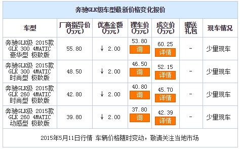 新浪银川汽车讯 近日,编辑从宁夏利之星奔驰4S店了解到,奔驰GLK级现车销售,颜色可选,目前购车部分车型可优惠2.00万元,感兴趣的朋友可以到店咨询购买。