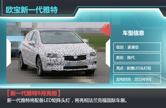 近日欧宝副总工程师Charlie Klein接受采访时表示,全新LED矩阵大灯将应用在其高端车型上,欧宝新一代雅特将成为首款使用这项技术的产品,新车预计将在9月法兰克福国际车展亮相。新一代雅特搭载的全新LED大灯由8颗独立LED单体组成,可以根据路况自动实现远近灯切换,在80km/h的速度下,相比普通卤素灯或氙气大灯监测速度更快,给驾驶者多出1.5s的反应时间。