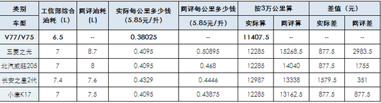 对比几大主流微客车型油耗,我们不难发现,新佳宝V77/V75更省油。按照年行驶3万公里计算,每年可多省出900元~1600元的油钱。