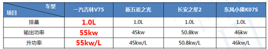 汽车功率对比表