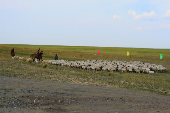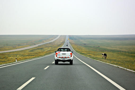 车辆在缓缓的行驶,窗外的牛羊并没有因为车队的靠近而变得惊悚害怕,我正在思索为何这些牛羊对车辆如此放松警惕时,手里的对讲机便给了我答案,在这里的草原公路上人们已经形成了一个习惯,不会在路上鸣笛,即使遇到有牛羊穿越马路也不会急躁,总会耐心的等待牛羊穿过之后才会缓缓起步,人们这种对自然的保护意识就是我要的答案。
