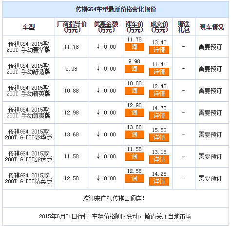 新浪银川汽车讯 近日,编辑从广汽传祺宁夏上陵4S店了解到,传祺GS4 (配置|询价)需提前预定,颜色可选,可试乘试驾,感兴趣的朋友可以到店咨询购买。