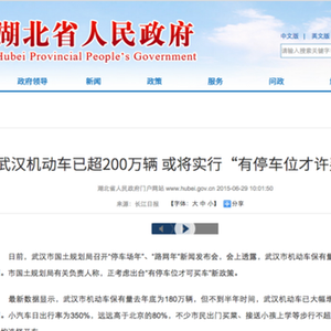 继北京传出拟实行“有位购车”计划之后,日前武汉也传出正考虑出台“有位购车”新政策。据长江日报报道称,日前,武汉市国土规划局召开“停车场年”、“路网年”新闻发布会,会上市国土规划局有关负责人称,正考虑出台“有停车位才可买车”的新政策。