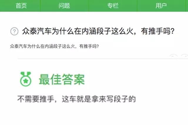 在很多时候,这些充满智慧的字句都要比新闻正文内容来得吸引,读时轻松诙谐,读后醍醐灌顶,发人深醒。所以,在江湖中一直流传着这么一则惊悚的传闻:“有人骂比亚迪,后来那个人被黑死了。有人骂众泰,后来那个人活活笑死了。“这么一则的传闻,让我至今提起众泰两个字时,依旧脊背发凉,汗如雨下。所以,如今敲着键盘的我,双手是抖抖瑟瑟的。在你读完这篇文章的时候,我整个人想必也已经不太妥。