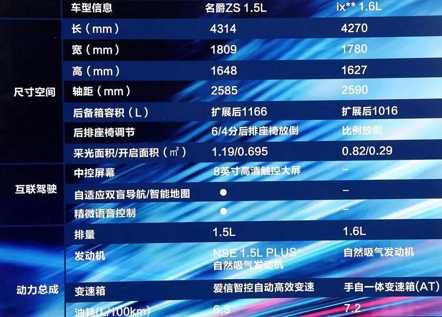 从上述的数据对比来看名爵ZS相比北京现代ix25除了轴距上相差5mm外,在车长、宽、高上都比较有优势,从后备箱的对比我们也不难发现名爵ZS扩展后的1166L相对比ix25的1016还是有一定的优势,到底这个优势有多少呢?