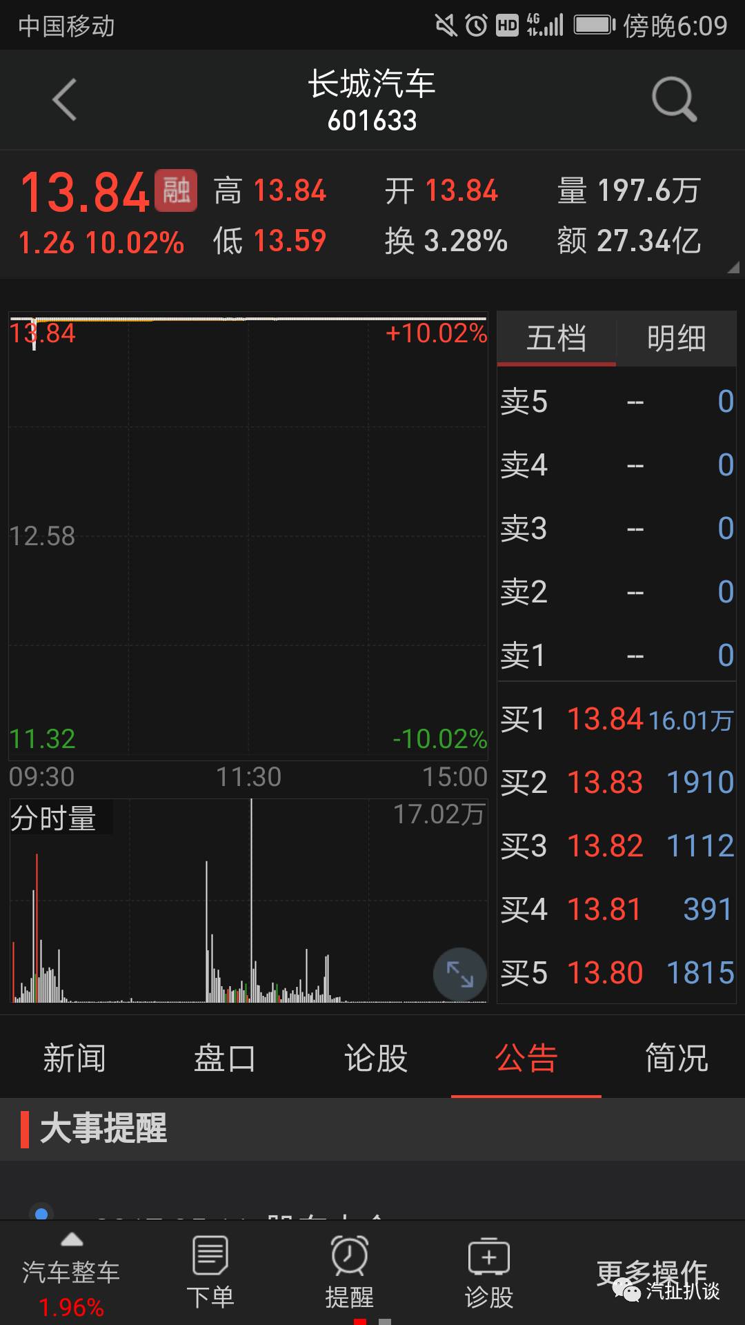 昨天一开盘,长城汽车就一直处于大单封单的状态,收盘时更是以17万手的大单,死死的被封在了涨停板上。以这个架势看来,长城汽车连续几个交易日封板应该不是问题。更重要的是,按未来长期的发展来看,长城汽车的股价发展潜力更是无限。