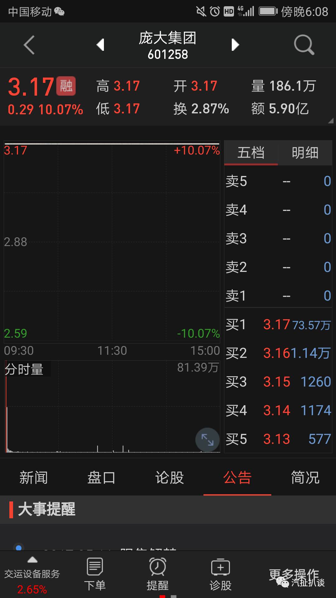 其实除了魏老板和他的长城汽车,庞大集团作为河北的著名汽车销售企业,昨天也被103万手的大单拍到了涨停板上。