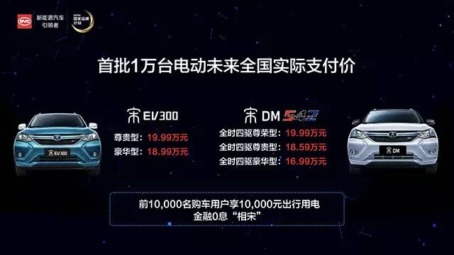 宋DM补贴后全国统一价为17.99万元—20.99万元,比亚迪将宋平台的技术亮点及五星安全保障扩大到整体,渗透到每一款不同动力的车型上。“三电”核心技术(电池、电机、电控)是比亚迪的看家本领。宋DM和宋EV300,就是这项技术日臻完善的产品。宋DM、宋EV300上市前,进行了总里程超过一百万公里的各种专业测试,给每一位用户“百万公里”的信心与保障。