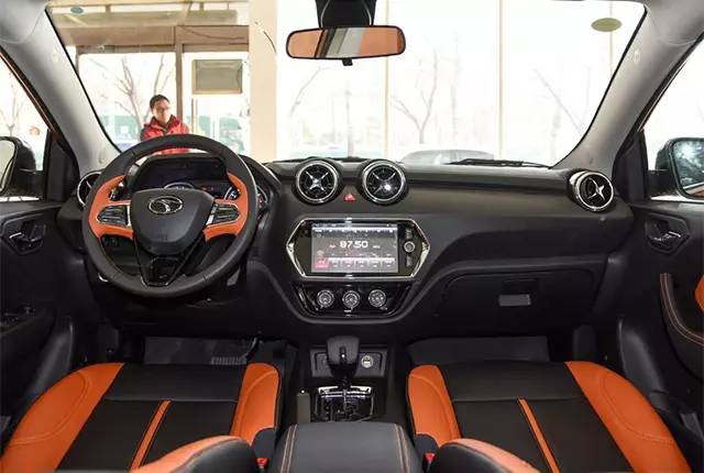 东南DX3的内饰看起来则更加年轻运动,圆形的空调出风口,小而精致的中控显示屏,同时搭配橘黑双色的座椅,毕竟这车的内饰设计与法拉利California T的内饰都出自同一人之手,配置上东南DX3许多都为全系标配,例如ESP车身稳定系统,上坡辅助,陡坡缓降,胎压监测,仿皮座椅,感应雨刷等等,而高配版的配置更不用说。