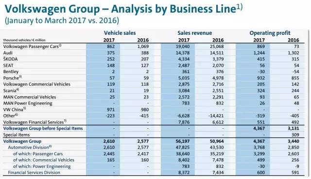 5月2日,大众汽车集团发布了2017年第一季度业绩,尽管前三个月其在全球范围内新车销量同比微跌,但由于成本控制见效,利润增长约四成比例。