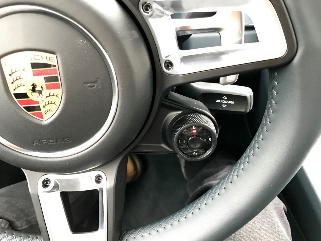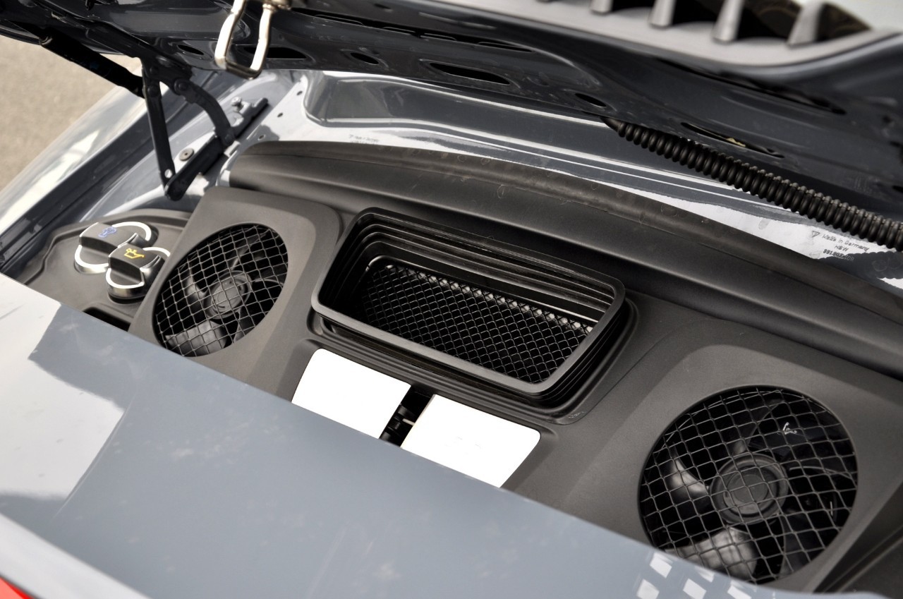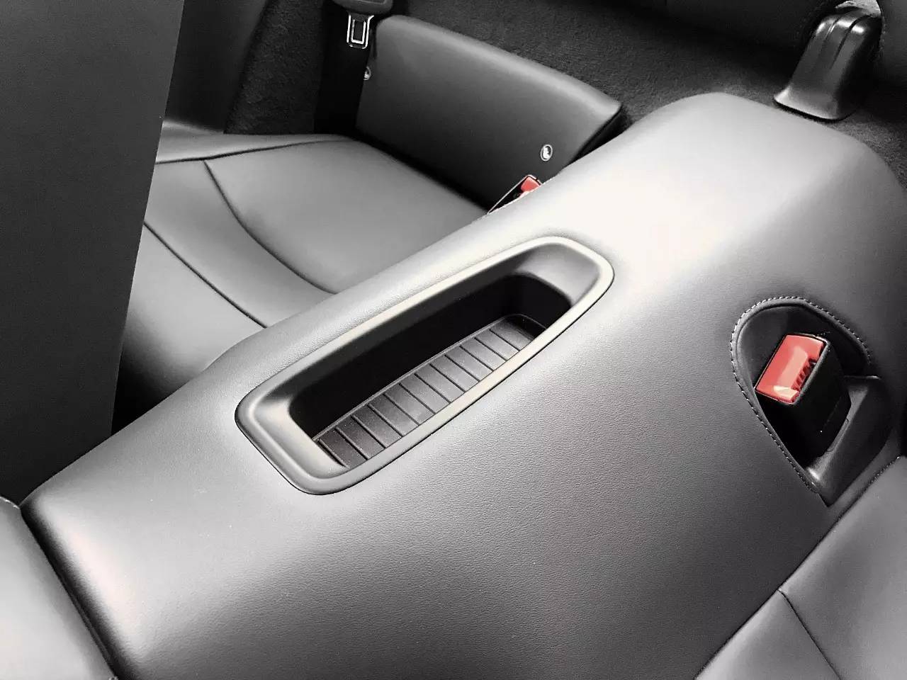 后排座椅中间的这个储物格就别太当真了,虽然底部也有防滑的纹路,但如果放些零碎东西的话,谁能保证开着911还不会让里面的东西飞出来呢