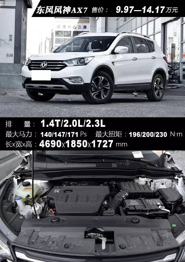 东风风神AX7,给人的感觉就是踏实稳重,整体造型大气而不失时尚,这与其较为出色的车身尺寸不无关系,从而也提供了宽敞的后排空间。值得一提的是,车内还搭载挺有科技感的车载智能互联系统,各种实用性配置也称得上一应俱全,整体的性价比还算满意。只不过,东风风神AX7提供的三款不同规格的发动机,动力性和燃油性均无特别突出的优势,而且整车的设计风格偏向成熟中庸,对于年轻消费者的吸引力实在不大。