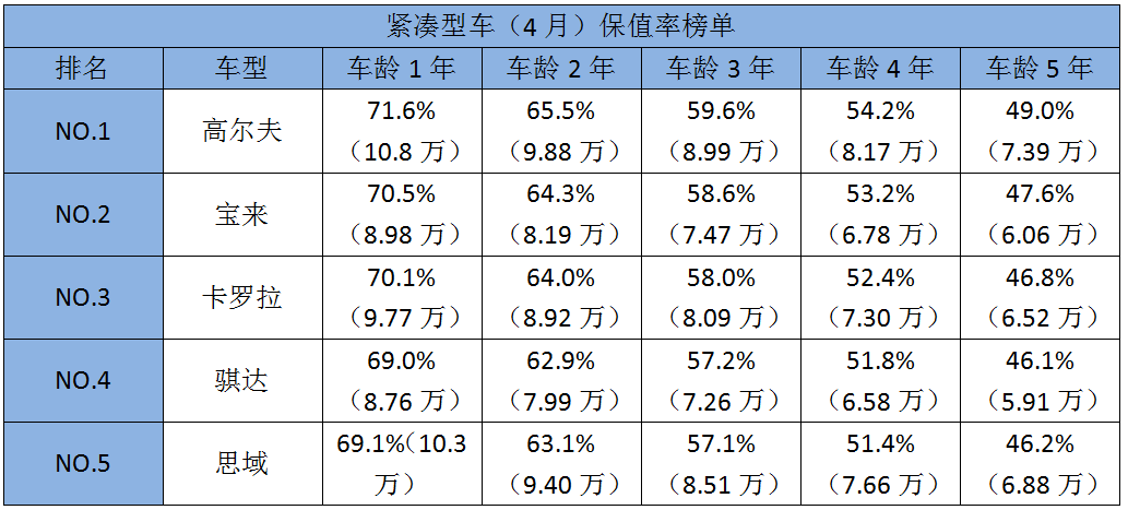 最保值的紧凑型车:大众高尔夫