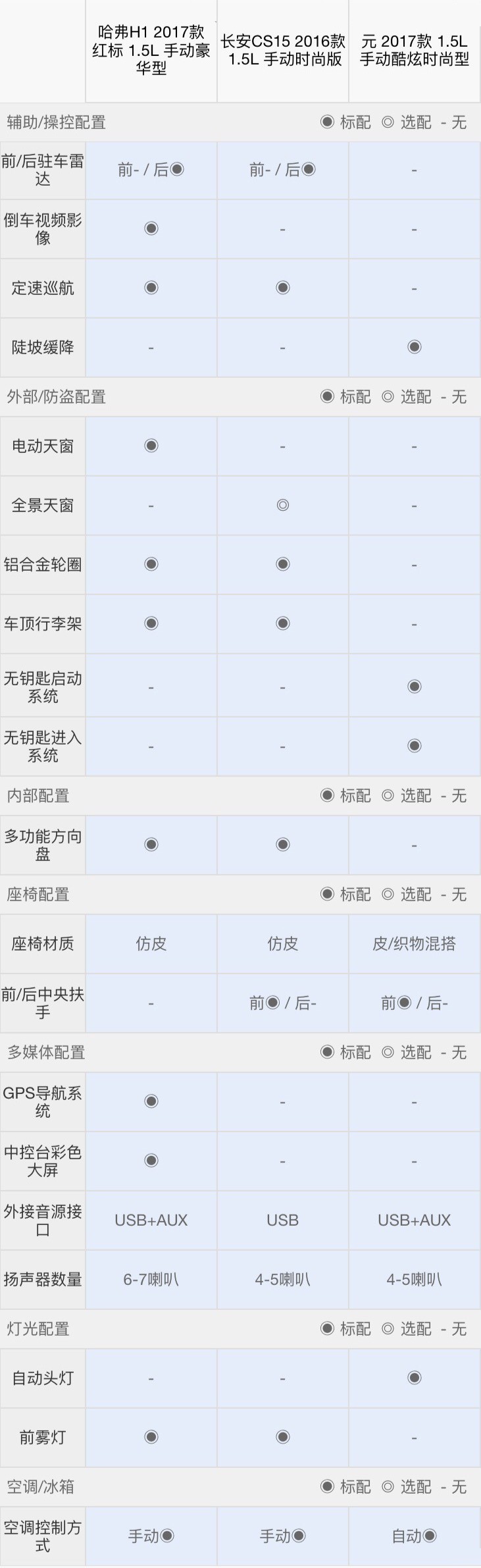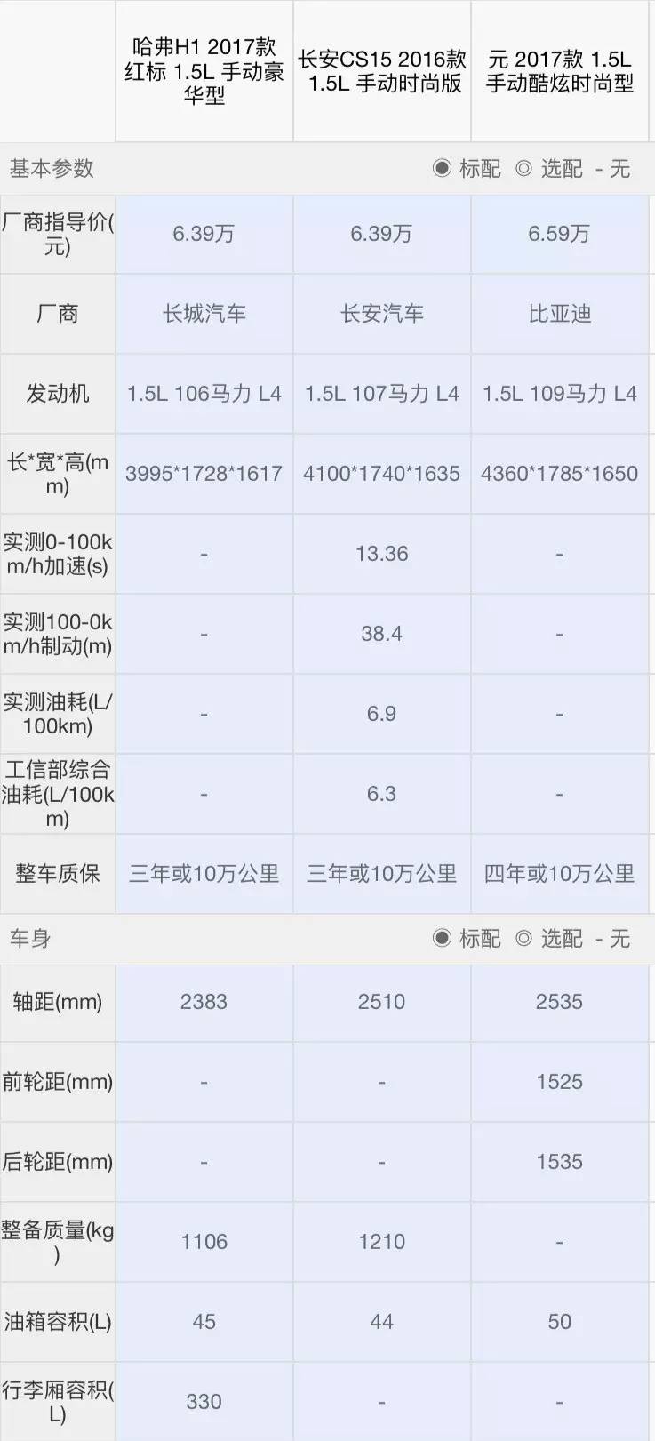 哈弗H1:哈弗H1是三款车里头尺寸最小的,空间表现也最差。除了配置比较丰富外,其他各方面表现都比较一般。除非比较看重配置以及哈弗的品牌影响力,否则还是从另外两款里面挑比较合理。