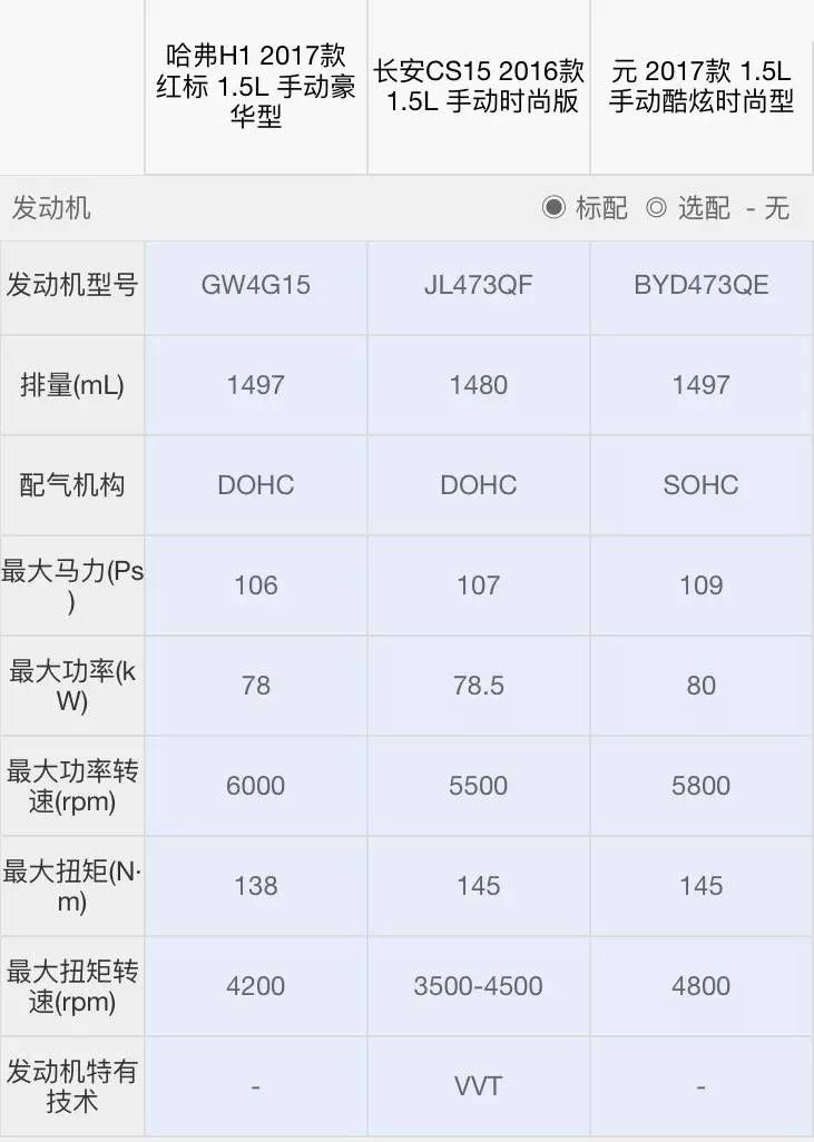 三款车都搭载了1.5L自然吸气发动机,匹配5挡手动变速箱,账面数据与实际表现都处于同一水平。当然,长安CS15的扭矩有一定优势,而且发力区间较早,更适合日常代步。