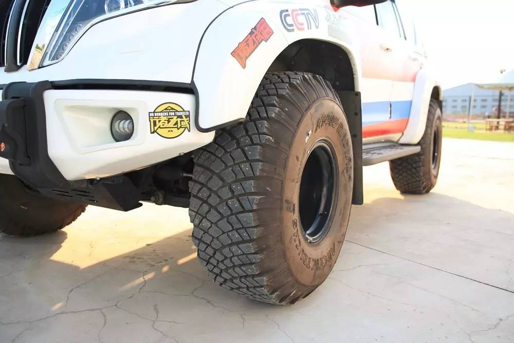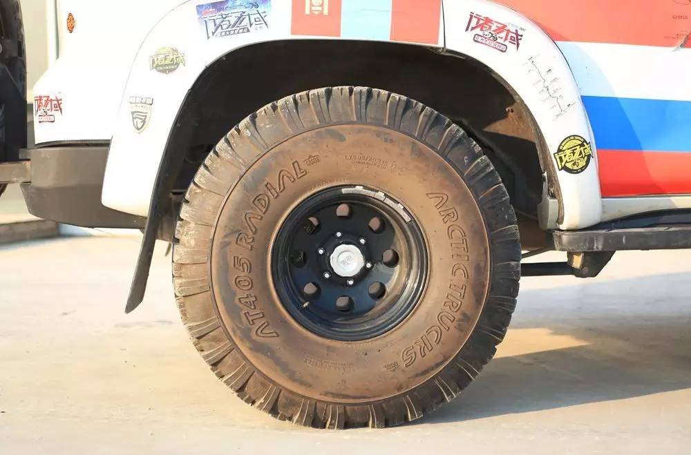 AT38是目前Arctic Trucks改装体系最标准的方案,它的改装核心就是采用38英寸的轮胎,以及在改装了大的轮胎后车辆平衡性和通过性如何得到保证。AT38标配的是5条诺基亚出品的38英寸雪地轮胎,轮胎的规格为LT405/70 R15,吴郁说每条轮胎的售价是2000美元。