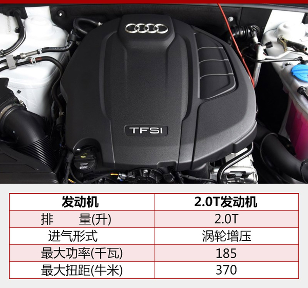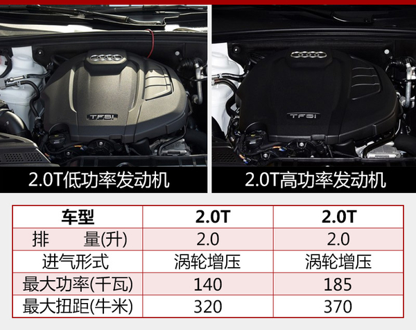 全新奥迪A5 Sportback,搭载了两款不同调校的高低功率两款2.0T发动机。低功率版本最大功率为140千瓦,峰值扭矩为320牛米。高功率版本发动机最大扭矩为185千瓦,峰值扭矩为370牛米。随着全时四驱的驱动力,0-100公里每小时的加速时间为6秒;并且,百公里综合油耗仅为5.9升。传动方面,与之匹配的是6速或7速Stronic双离合变速箱。