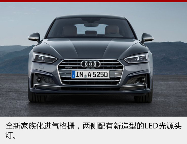 全新一代奥迪A5 Coupe基于MLB Evo平台打造,将采用运动化设计,使用了全新造型的进气格栅并提供LED光源头灯。此外,用户还可选装奥迪为新车提供的运动悬挂,配备该悬挂后可使新车的车身高度降低23毫米。