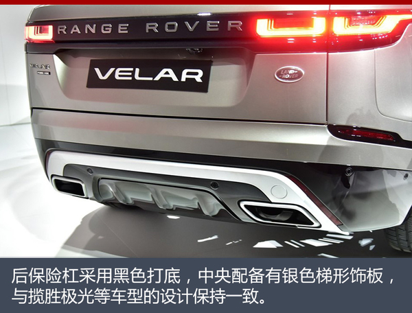 路虎揽胜星脉的尾部造型同样采用了路虎经典的家族式风格,横向的LED尾灯造型十分立体,与前大灯形成了呼应。内部的LED示宽灯灯带呈现扁“U”形设计,新车后保险杠下方配备有银色底盘护板,与揽胜极光等车型的设计保持一致。此外,新车还配有全景天窗和带有导流槽的的后扰流板。