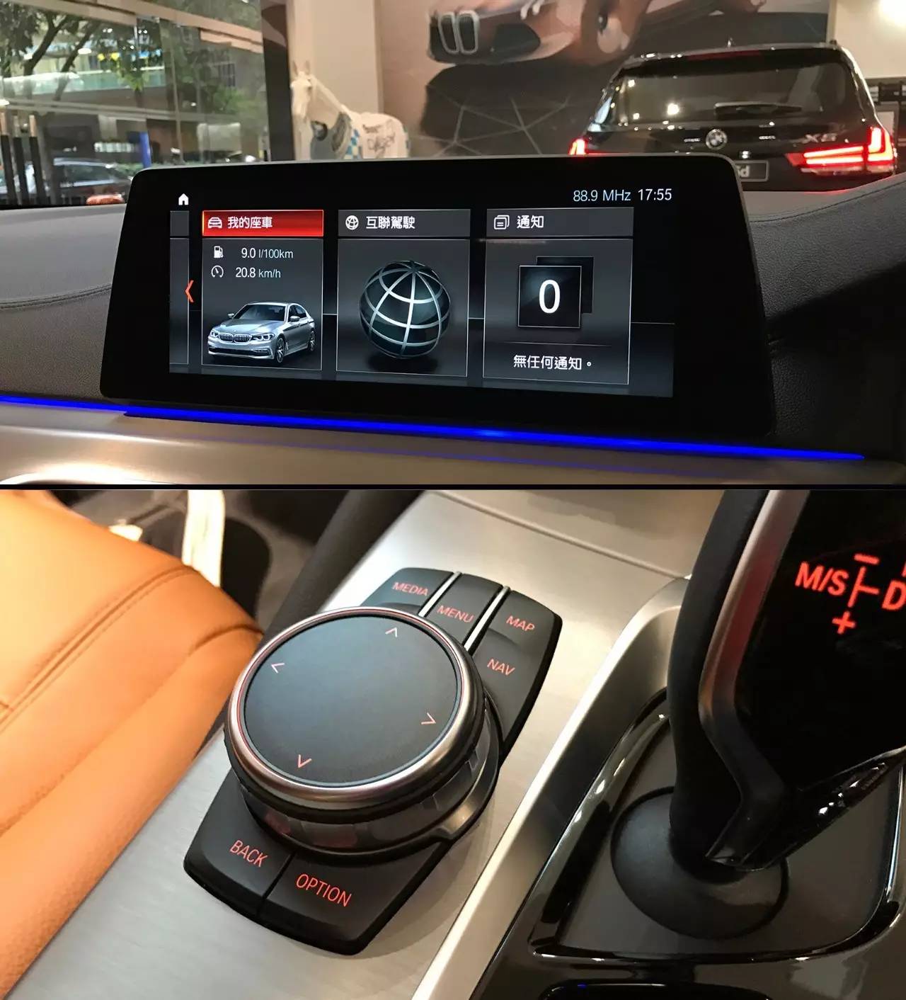 香港这辆最便宜的520d内部的用料并不含糊,座椅的颜色当然是可以选的,展车这配色对我而言有点炸眼,但皮质不错,舒适度也很好。这辆展车配有跟7系一样的氛围灯,晚上看还是挺醒目的。iDrive系统当然是最新的,而且这辆最便宜的520d也装备了带有手写板的大旋钮iDrive控制区。