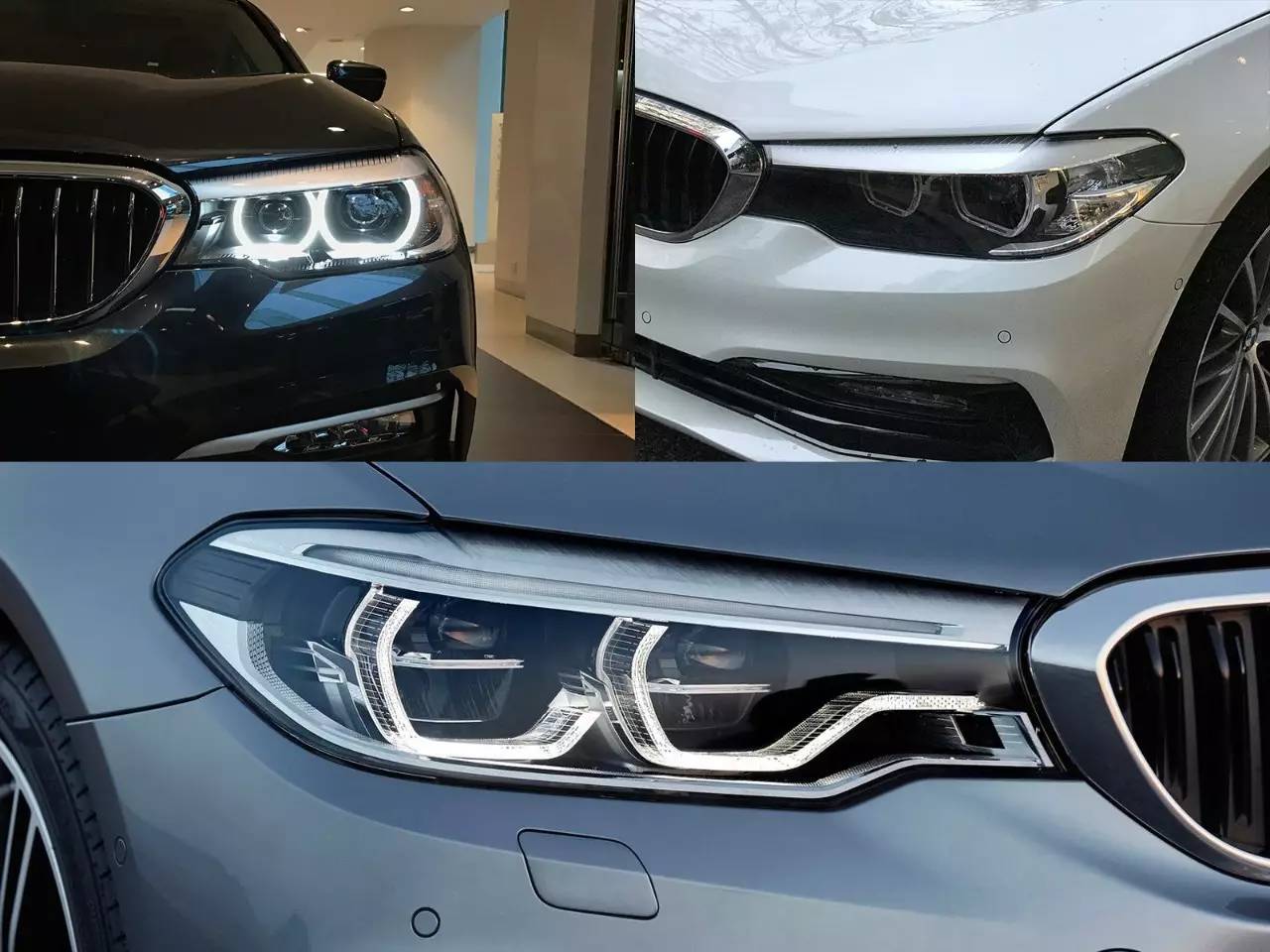 其次,头灯,我们在网上看到的所有新5系官图都配备了自适应的全LED头灯,而这次我在香港看到的这两辆5系,包括配置稍高的530i运动版,头灯都不是全LED的版本,而是远近光LED光源,转向灯依然为卤素的设计。而且灯眉很粗一条,上面也没有其他的点缀,看起来就像是整容效果未如预期的双眼皮。这就让整个前脸看起来和搭载全LED头灯的版本有了明显的落差,而且我猜未来国产5系走量的型号都会用着这款非全LED头灯。