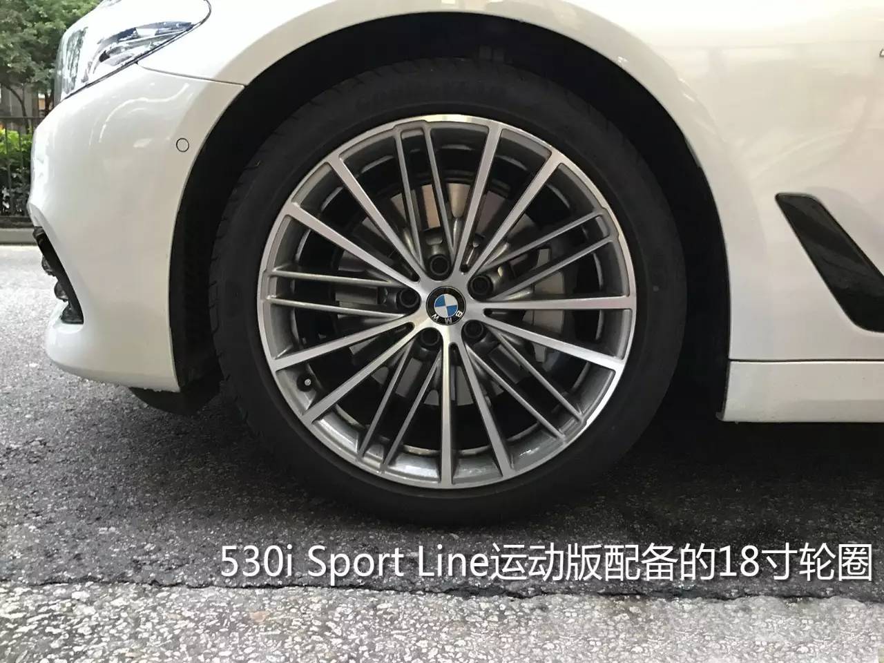 新5系依然有不同的设计套装可以选,展厅里这辆灰色520d可以理解为未来国产5系Li领先型的套装,比较素面朝天,镀铬很少,看着也不怎么运动。路边停放的白色530i Sport Line运动设计套装或许会与未来国产的标轴版本有较高的相似度,外观的饰条采用高亮黑的材质,轮圈如图所示。国产的长轴距版会有豪华设计套装和M套件,豪华设计套装会有更多的抛光饰条,而M套件的前后保险杠都会明显的变得更凶狠。