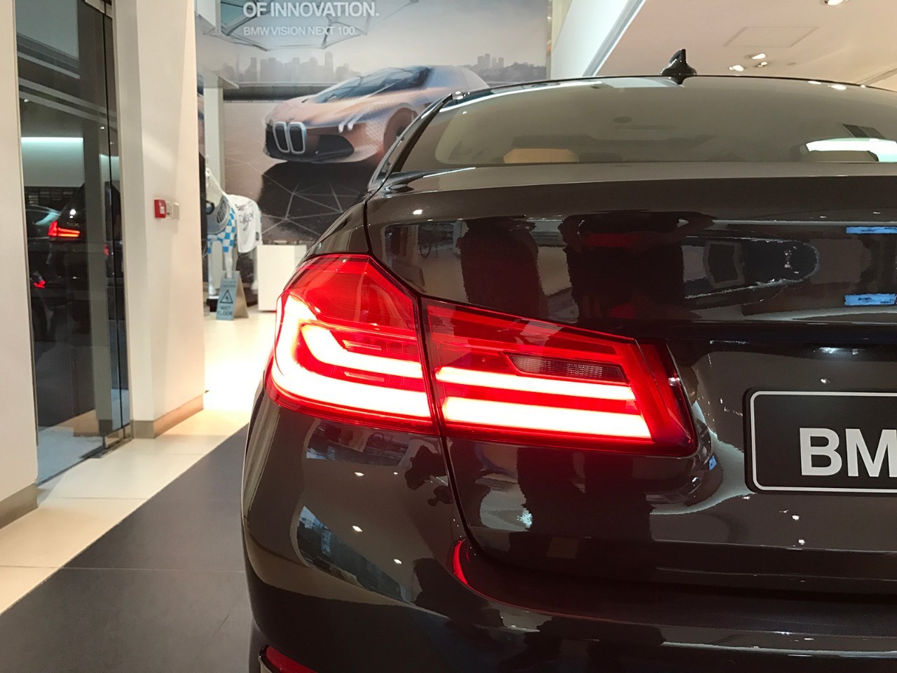 尾部就没什么特别之处了,新5系的尾灯没有一味地往新7系靠,而是有自己的风格,棱角更多,我认为点亮后的效果也比7系要好。香港这辆最便宜的520d也采用了双边共双出的设计,宝马在上海车展的时候也说了,未来国产的5系Li全系都会是双边共双出的,大家再也不用吐槽宝马的排气总需要改一改才够意思了。