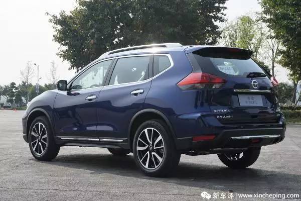 从外观就能看出奇骏改款的诚意,换上了家族V-motion设计的前进气格栅。上一代奇骏的车身设计太硬朗太阳刚,看上去是个彪形壮汉,而这一代车身线条风格偏阴柔,改款奇骏换上霸气侧漏的格栅之后是刚刚好的。汲取老款车型的阳刚之气的同时,又保持着现款车型的翩翩风度。新款车型增加了来自英菲尼迪车系的蓝色,这个颜色是真的好看;同时增加了19寸轮圈,视觉效果很好。