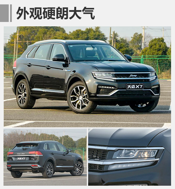 大迈X7外观较为硬朗,采用贯穿式的大尺寸镀铬中网,并与头灯组相连,上格栅有“Domy”徽标镶嵌。尾部方面,曲棍球杆样式的LED尾灯极具辨识度,一条粗壮的镀铬饰条横贯两侧尾灯组下沿。新车后保险杠两侧配有不规则造型雾灯,底部装有银色金属护板,整体运动感十足。