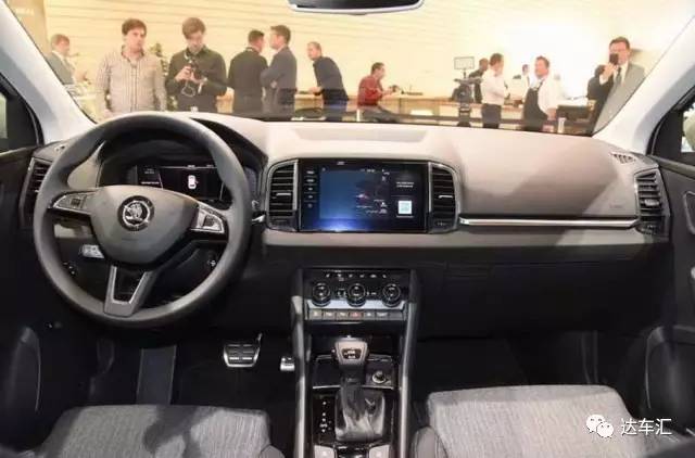 KAROQ的内饰设计与柯迪亚克并没有非常大的变化,中控台对称设计,左右侧扶手,按键布局、位置、功能都基本沿用了柯迪亚克的设计。但在设计细节上,比如说空调出风口形状、手套箱的位置进行了一定的调整。