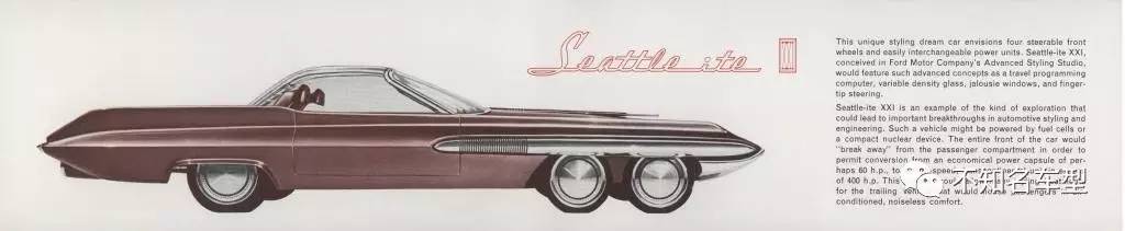 Seattle-ite XXI对当时限有的科技能力没有任何限制,无限自由是汽车进步的关键,这辆令人兴奋的概念车模型中许多前瞻性功能为未来汽车的科技性、舒适性和安全性带来了全新的概念。