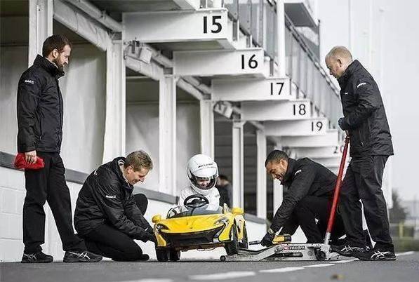 试驾当天,迈凯伦包下英国Goodwood赛道上,让小Leo在赛道上“狂飙”了几圈,还煞有其事的请来整组原厂维修团队在PIT区(后勤维修补给区)待命,帮Leo顶起车换胎。