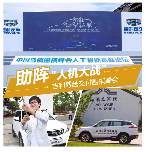 “中国乌镇围棋峰会人工智能高峰论坛”由中国围棋协会和浙江省体育局携手Google三方联合主办,将于5月23日在水乡乌镇举行,吉利博越 (配置|询价)则是此次活动的战略合作伙伴用车。