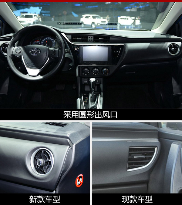 内饰方面,新款雷凌整体延续现款车型设计,仅在一些细节方面进行了调整。最大的变化在于两侧空调出风口采用了全新的圆形样式,仪表盘底色加入深蓝色,提高仪表易读性。此外,新车的挡杆造型也进行了全新设计。