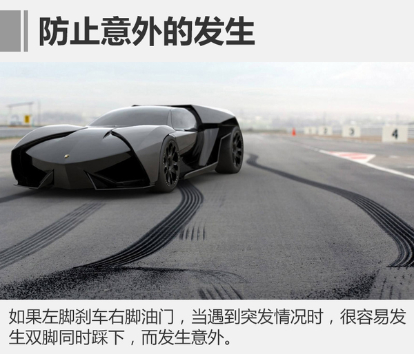 人类的大脑在遇到突发情况时,会在一瞬间阻止你的行动。当开车遇到危险时,如果左脚刹车右脚油门,那么大脑做出的反应是同时踩下。刹车是靠摩擦来减速的,但是油门又是在加速,这样会使得刹车的距离大大增加。原本5米就能停的速度,也许跑出去20米都没有停下。