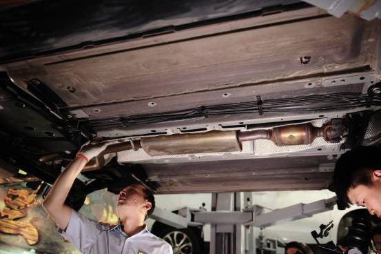 尽管三款车型都自带底盘隔板,但尺寸依旧存在差异,东风风神AX5和自主B车采用的是底盘隔热板,而合资A车只有一块单薄的护板。相比三者的底盘布局,合资A车相对平整一些,而东风风神AX5用隔层材料覆盖了一部分底盘部件,主要可见的部分只有排气管道。