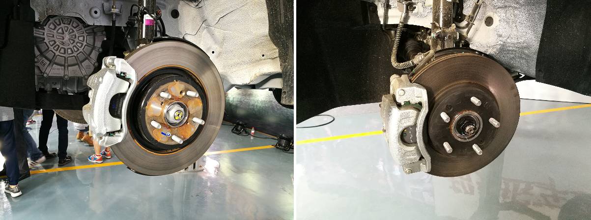 对比三款车型的刹车系统,东风风神采用比较新潮的红色刹车钳,而其余两款车型都是较为普通的刹车钳样式,三者都是前通风盘后实心盘的制动盘,但在轮胎部分,三款车型采用的轮胎均来自不同制造商,按市场价来比较,东风风神AX5采用的马牌轮胎是三种当中最高端的一款。