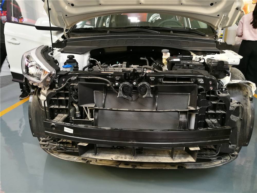 现场第一个拆解环节就是正前方的保险杠,工作人员还把三车拆解下来的部件进行尺寸测量,实际对比的意义不大,这里就不多加阐述。而主要进行对比的是防撞梁的材质和结构,毕竟多数家用车的前保险杠主要用来保护行人不受撞击而受伤,塑料件没有太大的可比性。