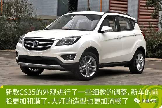 长安CS35整车外观造型挺拔有力,线条流畅、犀利、干净利落。前脸造型极具冲击力,前格栅大气中蕴含着精致;前大灯采用刀削式设计风格,并配以自然流畅的曲线饰圈和炮筒式透镜罩;前轮眉线条向下延伸,与雾灯下沿融合。