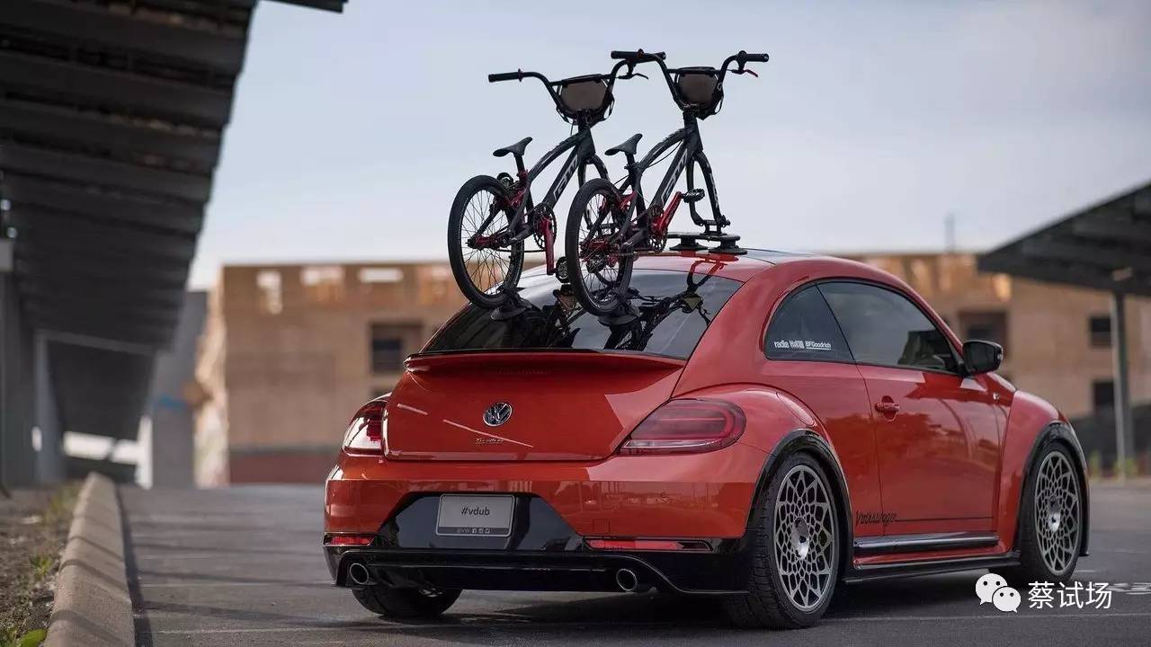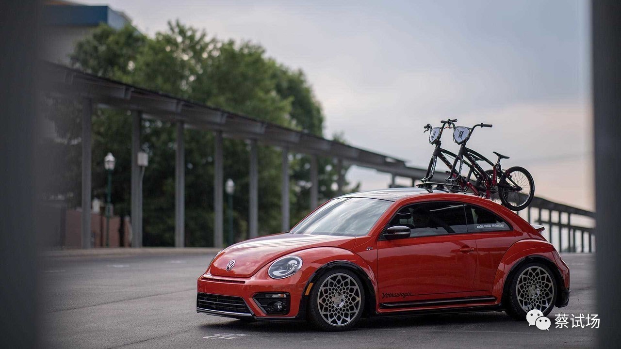 概念车由大众美国和BMX冠军车手Alise Post打造,基于甲壳虫R-Line款,哈瓦那橙色车漆,车顶架有两辆GW自行车,配H&R Street Performance减振,车身降低,搭配Mr.Drama Queen 19寸轮毂。(Volkswagen、Motor1)