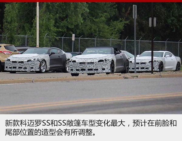 科迈罗是雪佛兰旗下的一款经典跑车,目前已发布六代车型。网通社从美国媒体Motor1获得了一组雪佛兰科迈罗中期改款车型的路试谍照,参与路试的共有4款车型,分别为科迈罗新1LT、SS、SS敞篷版和ZL1,新车将于2018年初正式亮相。